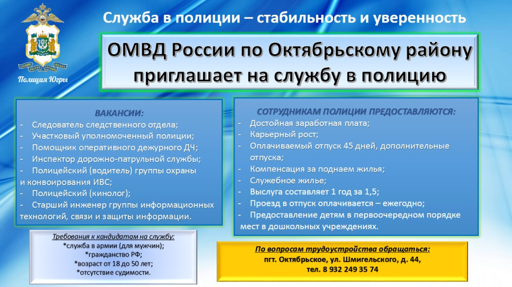 ОМВД России по Октябрьскому району ХМАО - Югры приглашает на службу!