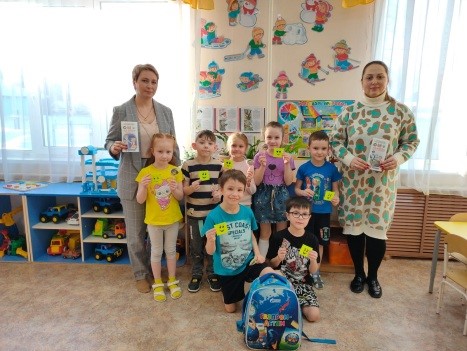 В завершении занятия ребята смогли примерить рюкзак первоклассника со светоотражающими элементами, собрали пазлы дорожных знаков, просмотрели мультфильм «Дозорные дорог», «Стань заметнее», и получили в подарок светоотражающий смайлик.