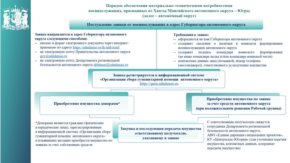 автономного округа – Югры разработана памятка «Порядок обеспечения материально-техническими потребностями военнослужащих, призванных из Ханты-Мансийского автономного округа – Югры» (