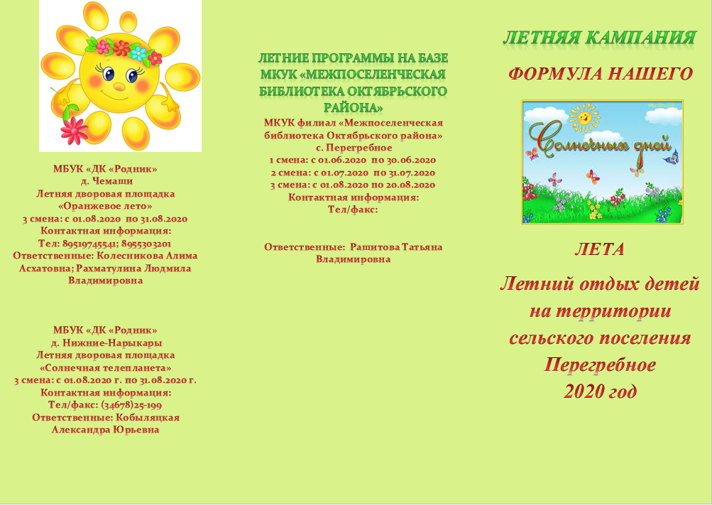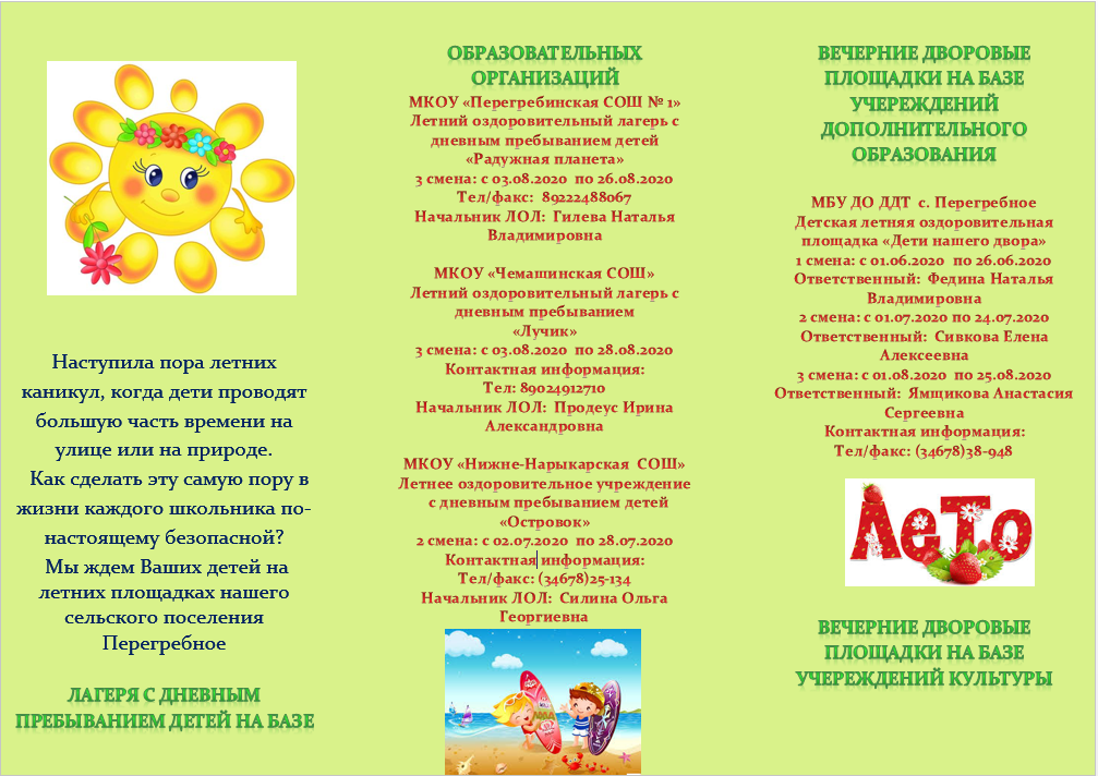 Летний отдых детей на территории сельского поселения Перегребное 2020 год